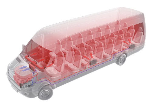 Air distribution examples for Off-Road, OnRoad & Bus/Coach with the Espar coolant or water heater.